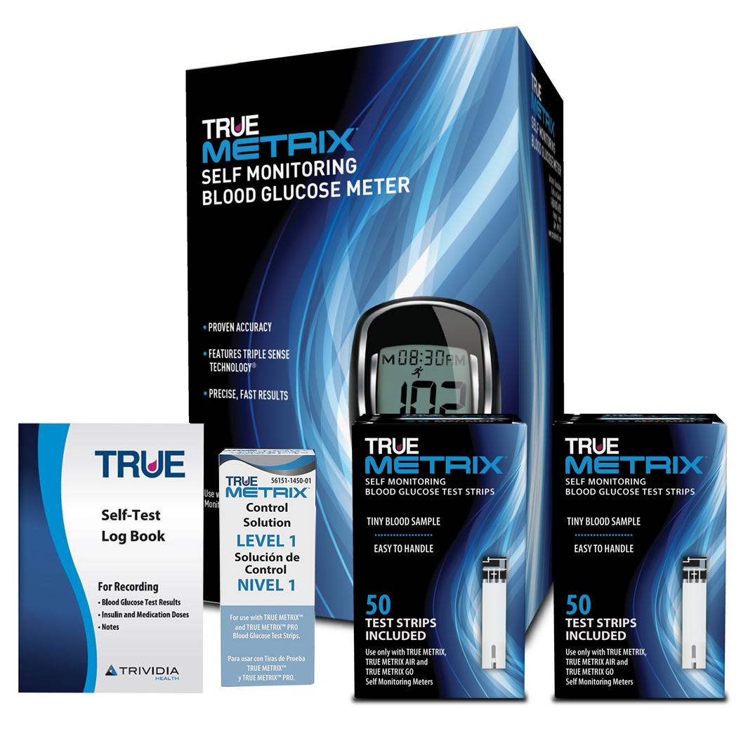 TRUE METRIX® Blood Glucose Testing Kit (Meter, 100 Strips, Control Solution, Log Book)