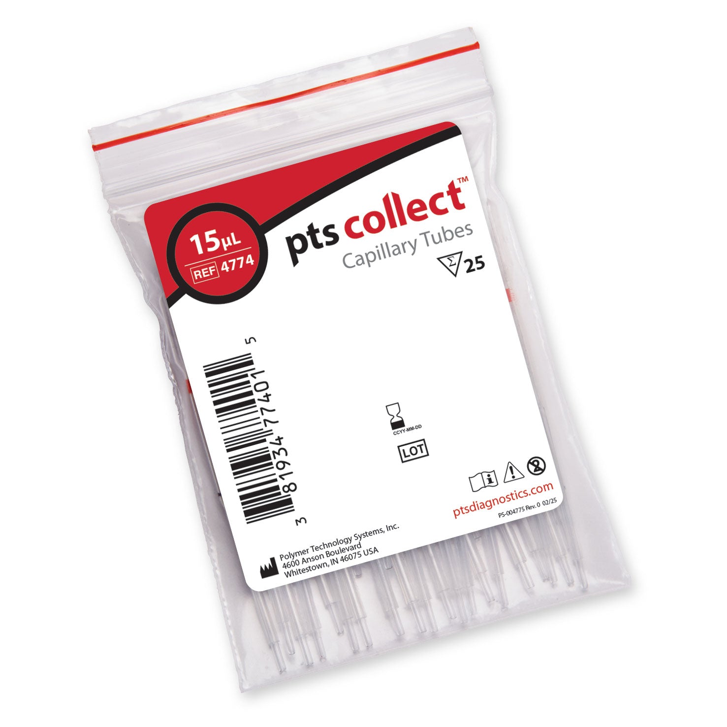 15 µL Capillary Tubes (25 Collectors) for Home Use